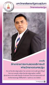 สวนสุนันทาเเต่งตั้ง รักษาราชการเเทนรองอธิการบดีฝ่ายวิทยาเขตนครปฐม tui sakrapee November 16, 2020 มรภ.สวนสุนันทาเเต่งตั้ง รักษาราชการเเทนรองอธิการบดีฝ่ายวิทยาเขตนครปฐม ด้วย มหาวิทยาลัยราชภัฏสวนสุนันทา โดย รองศาสตราจารย์ ดร.ชุติกาญจน์ ศรีวิบูลย์ รักษาราชการเเทนอธิการบดีมหาวิทยาลัยราชภัฏสวนสุนันทา เเต่งตั้งให้ ผู้ช่วยศาสตราจารย์ ดร.คมสัน โสมณวัตร ดำรงตำเเหน่ง รักษาราชการแทนรองอธิการบดี ฝ่ายวิทยาเขตนครปฐม ทั้งนี้ตั้งแต่วันที่ 17 พฤศจิกายน 2563 เป็นต้นไป #SSRU #SSRUNAKHONPATHOM #ssru #ssrunkpt #สวนสุนันทา #วิทยาเขตนครปฐม #ศูนย์นครปฐม #สวนนันนครปฐม www.nkpt.ssru.ac.th www.ssru.ac.th Continue Reading