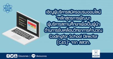 EZ Webmaster September 8, 2020 เชิญชวนผู้บริหารสมัครอบรมออนไลน์ “หลักสูตรการพัฒนาผู้บริหารสถานศึกษาเพื่อเป็นผู้นำด้านการขับเคลื่อนวิทยาการคำนวณ Codingfor School Director (C4S)” จาก สสวท. EZ Webmaster September 8, 2020 ขอเชิญผู้บริหารสถานศึกษาสมัครเข้าร่วมอบรมออนไลน์ “หลักสูตรการพัฒนาผู้บริหารสถานศึกษาเพื่อเป็นผู้นำด้านการขับเคลื่อนวิทยาการคำนวณ Codingfor School Director (C4S)” จากสถาบันส่งเสริมการสอนวิทยาศาสตร์และเทคโนโลยี (สสวท.) โดยหลักสูตรดังกล่าวมีวัตถุประสงค์เพื่อให้ผู้เข้ารับการอบรมมีความรู้ ความเข้าใจ เกี่ยวกับวัตถุประสงค์ มาตรฐานการเรียนรู้ กลุ่มสาระการเรียนรู้วิทยาศาสตร์และคณิตศาสตร์ การบริหารจัดการหลักสูตรแกนกลางการศึกษาขั้นพื้นฐาน พุทธศักราช 2551 (ฉบับปรับปรุง พ.ศ. 2560) การสร้างและขับเคลื่อนชุมชนแห่งการเรียนรู้ทางวิชาชีพ (PLC) ในโรงเรียน และสามารถบริหารจัดการโรงเรียนให้เป็นผู้นำด้านการขับเคลื่อนวิทยาการคำนวณตลอดจนนำไปสู่การปฏิบัติในสถานศึกษาได้อย่างมีประสิทธิภาพ สำหรับระยะเวลาการอบรมในหลักสูตรดังกล่าว เปิดอบรมในระหว่างวันที่ 9 กันยายน – 7 ตุลาคม 2563… Continue Reading