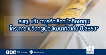 EZ Webmaster August 28, 2020 สพฐ.แจ้ง “การคัดเลือกนักศึกษาทุน โครงการ ผลิตครูเพื่อพัฒนาท้องถิ่น ปี 2563” EZ Webmaster August 28, 2020 สำนักงานคณะกรรมการการศึกษาขั้นพื้นฐาน (สพฐ.) ส่งหนังสือแจ้งถึงศึกษาธิการจังหวัด เรื่อง การคัดเลือกนักศึกษาทุนโครงการผลิตครูเพื่อพัฒนาท้องถิ่น ปี พ.ศ. ๒๕๖๓ โดยมีรายละเอียด ดังนี้ ด้วยสํานักงานคณะกรรมการการศึกษาขั้นพื้นฐานได้กําหนดปฏิทินการคัดเลือกนักศึกษาทุน โครงการผลิตครูเพื่อพัฒนาท้องถิ่น ปี พ.ศ. ๒๕๖๓ เพื่อบรรจุและแต่งตั้งเข้ารับราชการเป็นข้าราชการครู และบุคลากรทางการศึกษา ตําแหน่งครูผู้ช่วย โดยคณะกรรมการศึกษาธิการจังหวัดเป็นผู้ดําเนินการคัดเลือก ตามหลักเกณฑ์และวิธีการที่ ก.ค.ศ. กําหนด ตามหนังสือสํานักงาน ก.ค.ศ. ที่ ศธ ๐๒๐๖.๖/ว ๑๖ ลงวันที่ ๒๖… Continue Reading