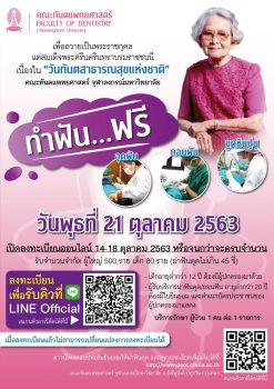 คณะทันตแพทยศาสตร์ จุฬาฯ ให้บริการรักษาทางทันตกรรมฟรี tui sakrapee October 8, 2020 คณะทันตแพทยศาสตร์ จุฬาฯ ให้บริการรักษาทางทันตกรรมฟรี อาทิ อุดฟัน ถอนฟัน ขูดหินปูน เนื่องในวันทันตสาธารณสุขแห่งชาติ ปี 2563 เพื่อถวายเป็นพระราชกุศลแด่สมเด็จพระศรีนครินทราบรมราชชนนี เนื่องใน “วันทันตสาธารณสุขแห่งชาติ” ในวันพุธที่ 21 ตุลาคม 2563 ณ คณะทันตแพทยศาสตร์ จุฬาฯ ผู้สนใจสามารถลงทะเบียนออนไลน์ล่วงหน้าเพื่อรับคิวในการรักษาระหว่างวันที่ 14-18 ตุลาคม 2563 ได้ที่ คิวอาร์โค้ดในโปสเตอร์ประชาสัมพันธ์ ผู้ใหญ่ 500 ราย เด็ก 80 ราย และผ่าฟันคุดไม่เกิน 45 ซี่ เด็กที่มีอายุไม่ต่ำกว่า 12 ปีต้องมีผู้ปกครองมาด้วย ผู้รับบริการถอนฟันหรือผ่าฟันคุดที่มีอายุต่ำกว่า 20 ปี ต้องมีใบยินยอมและสำเนาบัตรประชาชนของผู้ปกครองมาแสดงด้วย สอบถามรายละเอียดเพิ่มเติมได้ที่คณะทันตแพทยศาสตร์ จุฬาฯ โทร.… Continue Reading