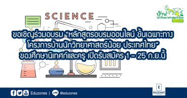 EZ Webmaster September 13, 2020 ขอเชิญร่วมอบรม “หลักสูตรอบรมออนไลน์ ขั้นเฉพาะทาง โครงการบ้านนักวิทยาศาสตร์น้อย ประเทศไทย” ของศึกษานิเทศก์และครู เปิดรับสมัคร 1 – 25 ก.ย.นี้ EZ Webmaster September 13, 2020 สำนักงานคณะกรรมการการศึกษาขั้นพื้นฐาน ร่วมกับสถาบันส่งเสริมการสอนวิทยาศาสตร์และเทคโนโลยี (สสวท.) เปิดรับสมัครครูปฐมวัยเข้ารับการฝึกอบรมออนไลน์ “หลักสูตรการฝึกอบรมออนไลน์ขั้นเฉพาะทาง โครงการบ้านนักวิทยาศาสตร์น้อย ประเทศไทย (A Professional Development for The Little Scientist House Thailand : Special Topics)” เพื่อให้ครูสามารถนำผลการพัฒนามานับชั่วโมงการพัฒนาเพื่อประกอบการขอมี/เลื่อนวิทยะฐานะ ตามหลักเกณฑ์ที่ ก.ค.ศ. กำหนด ซึ่งมีรายละเอียดกำหนดการและวิธีการสมัครเข้าอบรม ดังนี้ รับสมัคร 1 – 25 กันยายน 2563… Continue Reading