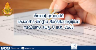 EZ Webmaster June 1, 2020 เช็กเลย! คุณสมบัติและเอกสารหลักฐาน สมัครสอบครูผู้ช่วย กรณีพิเศษ สพฐ. ปี พ.ศ. 2563 EZ Webmaster June 1, 2020 หลังจากที่ทางสำนักงานคณะกรรมการการศึกษาขั้นพื้นฐาน ประกาศคัดเลือกบุคคลใน ตำแหน่งครูผู้ช่วย กรณีพิเศษ กรณีที่มีเหตุจำเป็นหรือมีเหตุพิเศษ ที่จะทำการรับสมัครระหว่างวันที่ 16-22 มิถุนายน 2563 นี้นั้น วันนี้ทางเว็บไซต์ eduzones จึงมีข้อมูลคุณสมบัติและเอกสารหลักฐานที่สำคัญ มาฝากสำหรับผู้ที่ต้องการสมัครสอบทุกท่านค่ะ โดยเป็นข้อมูลอ้างอิงจากประกาศจากคณะกรรมการศึกษาธิการจังหวัดพิษณุโลก เรื่อง รับสมัครคัดเลือกบุคคลเพื่อบรรจุและแต่งตั้งเข้ารับราชการเป็นข้าราชการครูและบุคลากรทางการศึกษา ตำแหน่งครูผู้ช่วย กรณีที่มีความจำเป็นหรือมีเหตุพิเศษ ปี พ.ศ.2563 สังกัดสำนักงานคณะกรรมการการศึกษาขั้นพื้นฐาน คุณสมบัติของผู้มีสิทธิสมัครเข้ารับการคัดเลือก ผู้สมัครคัดเลือกต้องมีคุณสบัติทั่วไปตามมาตรา 30 แห่งพระราชบัญญัติระเบียบข้าราชการครูและบุคลากรทางการศึกษา พ.ศ.2547 และที่แก้ไขเพิ่มเติม มีคุณวุฒิปริญญาตรีทางการศึกษา หรือทางอื่นที่ กคศ.กำหนดเป็นคุณสมบัติเฉพาะสำหรับตำแหน่งครูผู้ช่วยในกลุ่มวิชา… Continue Reading