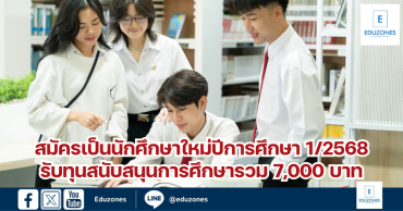 อิตาลีเปิดคลังทุนรัฐบาล MAECI ปี 2569–2570 ชวนนักศึกษาไทยเรียนต่อยุโรป รับเงินสนับสนุนกว่า 4 แสนบาทต่อปี EZ WebmasterMarch 16, 2026 อิตาลีเปิดคลังทุนรัฐบาล MAECI ปี 2569–2570 ชวนนักศึกษาไทยเรียนต่อยุโรป รับเงินสนับสนุนกว่า 4 แสนบาทต่อปี รัฐบาลอิตาลี โดย กระทรวงการต่างประเทศและความร่วมมือระหว่างประเทศอิตาลี (MAECI) ร่วมกับสถานเอกอัครราชทูตอิตาลีประจำประเทศไทย ประกาศเปิดรับสมัคร ทุนการศึกษารัฐบาลอิตาลี ประจำปีการศึกษา 2026–2027 (พ.ศ.… โอกาสสุดท้าย! ทุน สควค. ป.โท รอบ 2 ปี 2569 ว่าง 71 ทุน เรียนฟรี มีเงินเดือน จบแล้วบรรจุครูทันที EZ WebmasterMarch 14, 2026 โอกาสสุดท้าย! ทุน สควค. ป.โท รอบ 2 ปี 2569 ว่าง 71 ทุน เรียนฟรี มีเงินเดือน จบแล้วบรรจุครูทันที สถาบันส่งเสริมการสอนวิทยาศาสตร์และเทคโนโลยี (สสวท.) เปิดรับสมัครผู้รับทุน โครงการส่งเสริมการผลิตครูที่มีความสามารถพิเศษทางวิทยาศาสตร์และคณิตศาสตร์… เปิดรับสมัคร Work & Holiday 2569 ออสเตรเลีย 2,000 คน – นิวซีแลนด์ 100 คน โอกาสทำงานและท่องเที่ยวต่างประเทศสำหรับเยาวชนไทย EZ WebmasterMarch 12, 2026 เปิดรับสมัคร Work & Holiday 2569 ออสเตรเลีย 2,000 คน – นิวซีแลนด์ 100 คน โอกาสทำงานและท่องเที่ยวต่างประเทศสำหรับเยาวชนไทย กรมกิจการเด็กและเยาวชน กระทรวงการพัฒนาสังคมและความมั่นคงของมนุษย์ เปิดรับสมัครเยาวชนไทยเข้าร่วม โครงการ Work… ครู-อาจารย์ “16 ปี รางวัลคนดีประเทศไทย” เชิดชูพลังสื่อสร้างสรรค์เพื่อการศึกษา Eduzones คว้ารางวัลสื่อสร้างสรรค์เพื่อเด็กและเยาวชน ปี 2569 EZ WebmasterMarch 19, 2026 🎖️ “16 ปี รางวัลคนดีประเทศไทย” เชิดชูพลังสื่อสร้างสรรค์เพื่อการศึกษา Eduzones คว้ารางวัลสื่อสร้างสรรค์เพื่อเด็กและเยาวชน ปี 2569 มูลนิธิคนดี (ประเทศไทย) สมาคมนักข่าวอาชญากรรมแห่งประเทศไทย ร่วมกับ บริษัท ซีพี ออลล์ จำกัด (มหาชน)… เจาะงานวิจัยตามติดเด็ก 10 ปี: เมื่อเด็กไทยเรียนสูงขึ้น แต่ระดับสติปัญญา (IQ) กลับโตไม่ทันโลก EZ WebmasterMarch 18, 2026 เจาะงานวิจัยตามติดเด็ก 10 ปี: เมื่อเด็กไทยเรียนสูงขึ้น แต่ระดับสติปัญญา (IQ) กลับโตไม่ทันโลก แม้เด็กไทยจะมีโอกาสเรียนสูงขึ้นและอยู่ในระบบการศึกษานานขึ้น แต่คำถามสำคัญคือ “คุณภาพการเรียนรู้ของเด็กไทยเติบโตทันโลกหรือไม่” คำตอบจากงานวิจัยระยะยาวกว่า 10 ปี ชวนให้สังคมไทยต้องกลับมาทบทวนอย่างจริงจัง เมื่อผลการติดตามพัฒนาการเด็กพบว่า เด็กไทยกลุ่มตัวอย่างแม้จะโตขึ้นและเรียนสูงขึ้น แต่ พัฒนาการด้านสติปัญญา… สพฐ.ปลื้ม! เดินหน้า “ปรับ-ลด-ปลดล็อก” ลดภาระงานครูได้แล้วกว่า 12,711 รายการ EZ WebmasterMarch 17, 2026 สพฐ.ปลื้ม! เดินหน้า “ปรับ-ลด-ปลดล็อก” ลดภาระงานครูได้แล้วกว่า 12,711 รายการ สำนักงานคณะกรรมการการศึกษาขั้นพื้นฐาน (สพฐ.) เผยความคืบหน้า