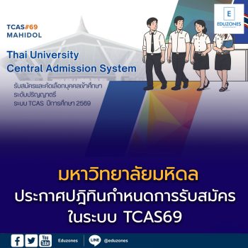 ปฎิทินรับสมัคร ม.มหิดล ในระบบ TCAS69 EZ Webmaster August 28, 2025 TCAS รอบที่ 1.1 : PORTFOLIO – รับสมัคร : 1 ต.ค. – 16 ต.ค 68 – สอบสัมภาษณ์ : 1 – 2 พ.ย. 68 – ช่องทางสมัคร : https://tcas.mahidol.ac.th . TCAS รอบที่ 1.2 : PORTFOLIO – รับสมัคร : 1 ธ.ค. 68 – 8 ม.ค. 69… Continue Reading