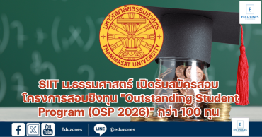 SIIT ม.ธรรมศาสตร์ เปิดรับสมัครสอบ โครงการสอบชิงทุน “Outstanding Student Program (OSP 2026)” กว่า 100 ทุน EZ Webmaster August 27, 2025 สถาบันเทคโนโลยีนานาชาติสิรินธร มหาวิทยาลัยธรรมศาสตร์ (SIIT) เปิดรับสมัครนักเรียน และนักศึกษาเข้าร่วมโครงการสอบชิงทุนสำหรับนักเรียนที่มีผลการเรียนดีเลิศ “Outstanding Student Program (OSP 2026)” ประจำปีการศึกษา 2569 จำนวนกว่า 100 ทุน เพื่อเปิดโอกาสการเรียนรู้ศาสตร์ด้านวิศวกรรมและเทคโนโลยีที่สอดรับกับการแข่งขันในบริบทโลก รวมถึงโอกาสเติบโตในระดับนานาชาติ โดยทุนดังกล่าวครอบคลุมค่าใช้จ่ายระยะเวลาการศึกษาในหลักสูตรปริญญาตรี 4 ปี ผู้สมัครต้องเป็นผู้ที่กำลังศึกษาอยู่ในระดับชั้น ม.6 หรือ สำเร็จการศึกษาระดับมัธยมศึกษาปีที่ 6 หรือเทียบเท่า และมีเกรดเฉลี่ยสะสม (GPA) ตลอด 4 ภาคการศึกษา ระดับมัธยมศึกษาปีที่ 4 – 5 ไม่ต่ำกว่า 2.50 โดยในปีนี้สถาบัน ยังได้เพิ่มศูนย์สอบทั่วประเทศเป็น 5 แห่ง ได้แก่ จังหวัดเชียงใหม่ ขอนแก่น ภูเก็ต สงขลา ที่กำหนดสอบในวันที่ 11 ตุลาคม 2568 และศูนย์สอบที่กรุงเทพฯ จะจัดสอบในวันที่ 18 ตุลาคม 2568 นี้ ผู้สนใจ สามารถสมัครสอบเข้าร่วมโครงการชิงทุนการศึกษาได้ ตั้งแต่วันนี้ จนถึงวันที่ 19 กันยายน 2568 โดยไม่เสียค่าใช้จ่าย ดูรายละเอียดเพิ่มเติมได้ที่ https://shorturl.asia/Xt6Sr สอบถามโทรศัพท์ 02 986 9009 Continue Reading