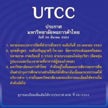 ม.หอการค้าไทย ชูนโยบายช่วยเหลือนักศึกษาใหม่และเก่าจากผลกระทบโควิด–19 EZ Webmaster March 29, 2020 มหาวิทยาลัยหอการค้าไทยเป็นสถาบันอุดมศึกษาเอกชนที่ไม่แสวงหาผลกำไร โดยมี “หอการค้าไทย” เป็นเจ้าของ ประกอบด้วย 15 คณะ ได้แก่ คณะบริหารธุรกิจ คณะบัญชี คณะเศรษฐศาสตร์ คณะมนุษยศาสตร์และประยุกต์ศิลป์ คณะวิทยาศาสตร์และเทคโนโลยี คณะนิเทศศาสตร์ คณะวิศวกรรมศาสตร์ คณะนิติศาสตร์ คณะการท่องเที่ยวและอุตสาหกรรมบริการ คณะการศึกษาปฐมวัย คณะวิทยพัฒน์ คณะศิลปะและการออกแบบดิจิทัล วิทยาลัยผู้ประกอบการ และวิทยาลัยนานาชาติเพื่อการจัดการ โดยเปิดสอนระดับปริญญาตรี โท และเอก รวมทั้งหลักสูตรนานาชาติ จากผลกระทบการแพร่ระบาดไวรัสโคโลน่า โควิด – 19 ทำให้ส่งผลกระทบในกว้างต่อภาคธุรกิจ การค้า อุตสาหกรรมและวงการศึกษาไทย มหาวิทยาลัยหอการค้าไทยมีความตระหนักถึงความรับผิดชอบต่อสังคม นักศึกษาและผู้ปกครองเป็นอย่างมาก พร้อมจับมือทุกฝ่ายก้าวข้ามวิกฤติการณ์ครั้งนี้ โดยทางมหาวิทยามีมาตรการช่วยเหลือนักศึกษาเข้าใหม่นักเรียนชั้นมัธยมศึกษาตอนปลาย ปวช.และปวส.เทียบโอน สามารถสมัครเข้าเรียนชำระค่าเทอมขั้นต้น 5,000 บาท… Continue Reading