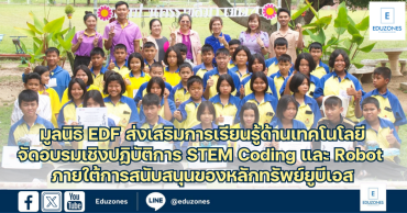 มูลนิธิ EDF ส่งเสริมการเรียนรู้ด้านเทคโนโลยี จัดอบรมเชิงปฏิบัติการ STEM Coding และ Robot ภายใต้การสนับสนุนของหลักทรัพย์ยูบีเอส EZ Webmaster August 25, 2025 มูลนิธิ EDF (มูลนิธิกองทุนการศึกษาเพื่อการพัฒนา) ภายใต้การสนับสนุนจาก บริษัทหลักทรัพย์ ยูบีเอส (ประเทศไทย) จำกัด จัดอบรมเชิงปฏิบัติการ STEM Coding และ Robot เพิ่มพูนและพัฒนาศักยภาพของนักเรียนและครูโรงเรียนนิคมสร้างตนเองลำตะคอง 4 สังกัดสำนักงานเขตพื้นที่การศึกษาประถมศึกษานครราชสีมา เขต 4 ซึ่งได้รับความสนใจจากนักเรียนระดับชั้นประถมศึกษาปีที่ 6 จนถึงมัธยมศึกษาปีที่ 3 และคณะครูเข้าร่วมกิจกรรมเป็นอย่างดี การอบรมเชิงปฏิบัติการ STEM Coding และ Robot มีวัตถุประสงค์เพื่อพัฒนาองค์ความรู้เรื่องสะเต็มศึกษา (STEM มาจากคำภาษาอังกฤษว่า วิทยาศาสตร์ (Science) เทคโนโลยี (Technology) วิศวกรรมศาสตร์ (Engineering และ คณิตศาสตร์ Mathematics) ให้เข้ากับการเขียนโปรแกรมที่เรียกกันว่า Coding (โค้ดดิ้ง) และการทำงานของหุ่นยนต์ (Robot) ที่อาศัยการทำงานจากการป้อนคำสั่งด้วยการทำ Coding บังคับหุ่นยนต์ให้ไปในทิศทางที่ต้องการ ถือเป็นการยกระดับการเข้าถึงทักษะด้านเทคโนโลยี รวมถึงกระตุ้นความสนใจการเรียนวิชาวิทยาศาสตร์และเทคโนโลยี และที่สำคัญเพื่อบูรณาการกิจกรรมเข้าในหลักสูตรของทางโรงเรียน ระหว่างการอบรมนักเรียนและครูได้เรียนรู้แพลตฟอร์มใหม่ ๆ เรียนรู้แพลตฟอร์ม Scratch การเขียน Coding หุ่นยนต์ mBot การเขียน Coding ออกแบบเกมส์เบื้องต้น เป็นต้น นางสาวรจนา สุรินทร์ ผู้อำนวยการโรงเรียนนิคมสร้างตนเองลำตะคอง 4 สังกัดสำนักงานเขตพื้นที่การศึกษาประถมศึกษานครราชสีมา เขต 4 กล่าวว่า “ในนามคณะผู้บริหารโรงเรียนนิคมสร้างตนเองลำตะคอง 4 พวกเราขอขอบคุณบริษัทหลักทรัพย์ ยูบีเอส (ประเทศไทย) จำกัด ที่ตระหนักถึงความสำคัญเรื่องเทคโนโลยีสำหรับโรงเรียนในพื้นที่ห่างไกล และได้มอบหมายให้มูลนิธิ EDF ประสาน และเข้ามาดำเนินการฝึกอบรมเชิงปฏิบัติการ STEM Coding และ Robot แก่นักเรียนและครูโรงเรียนของเรา รวมทั้งยังมอบหุ่นยนต์ไว้ให้นักเรียน และครูได้ฝึกฝนเรียนรู้เรื่อง STEM Coding และ Robot ต่อไป ซึ่งเป็นสิ่งที่น่าชื่นชมอย่างยิ่ง” นายสรรเพชร นิลรัตน์… Continue Reading