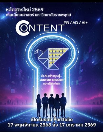 tui sakrapee December 11, 2025 หลักสูตรคอนเทนต์ฯ PR/AD/AI+ นิเทศ RPU เปิดรับสมัคร Portfolio ผลงาน AI tui sakrapee December 11, 2025 นิเทศ ม.ราชพฤกษ์ (RPU) เปิดรับสมัคร Portfolio ให้เสนอผลงานสร้างสรรค์คอนเทนต์ด้วย AI ในหลักสูตรใหม่ปี 2569 มุ่งสร้างคอนเทนต์ครีเอเตอร์สายประชาสัมพันธ์และโฆษณาด้วย AI สมัครภายใน 17 มกราคม 2569 คณะนิเทศศาสตร์ มหาวิทยาลัยราชพฤกษ์ (RPU) ปรับปรุงหลักสูตรใหม่สำหรับปีการศึกษา 2569 มุ่งสร้างบัณฑิตพึงประสงค์ในยุคการสื่อสารด้วยปัญญาประดิษฐ์ หลักสูตรใหม่ “คอนเทนต์การประชาสัมพันธ์และการโฆษณาบนฐานปัญญาประดิษฐ์” หรือ “พีอาร์แอดเอไอพลัส” (PR/AD/AI+) โดยมีปรัชญาการศึกษาที่มุ่งเน้นการเรียนรู้ที่นำปัญญาประดิษฐ์ (AI) มาขยายขีดความสามารถของผู้เรียน ให้มีความรู้ ทักษะ… Continue Reading