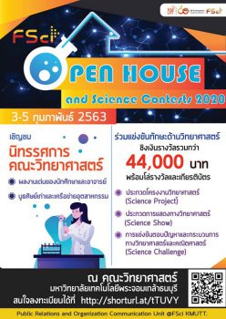 FSci Open House and Science Contests 2020 handy hotspurs January 16, 2020 ขอเชิญร่วมชมงาน FSci Open House and Science Contests 2020 เฉลิมฉลอง 60 ปี มหาวิทยาลัยเทคโนโลยีพระจอมเกล้าธนบุรี ในวันที่ 3-5 กุมภาพันธ์ 2020 ณ คณะวิทยาศาสตร์ มหาวิทยาลัยเทคโนโลยีพระจอมเกล้าธนบุรี โดยภายในงานประกอบด้วย นิทรรศการแสดงผลงานเด่นของนักศึกษา/ คณาจารย์ของคณะวิทยาศาสตร์, บูธศิษย์เก่า และเครือข่ายอุตสาหกรรม การประกวดโครงงานวิทยาศาสตร์ (Science Project) ประกวดการแสดงทางวิทยาศาสตร์ (Science Show) และการแข่งขันตอบปัญหาและกระบวนการทางวิทยาศาสตร์และคณิตศาสตร์ (Science Challenge) ชิงเงินรางวัลกว่า 44,000 บาท ผู้ที่สนใจเข้าร่วมชมงานเปิดบ้านคณะวิทยาศาสตร์สามารถลงทะเบียนได้ที่ https://forms.gle/5LHMRZdbCK3Mpbyn9 ผู้สนใจเข้าประกวดและแข่งขันประเภทต่างๆ สามารถโหลดใบสมัครได้ที่ https://is.gd/nF83pj และส่งกลับมาที่ E-mail:… Continue Reading