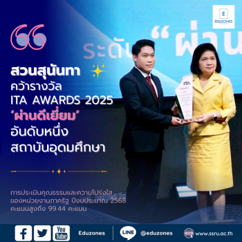 สวนสุนันทา คว้ารางวัล ITA AWARDS 2025 “ผ่านดีเยี่ยม” อันดับหนึ่งสถาบันอุดมศึกษา tui sakrapee August 16, 2025 มหาวิทยาลัยราชภัฏสวนสุนันทา คว้ารางวัล ITA AWARDS 2025 จากผลการประเมินคุณธรรมและความโปร่งใสของหน่วยงานภาครัฐ (Integrity and Transparency Assessment: ITA) ประจำปีงบประมาณ 2568 ด้วยคะแนนสูงถึง 99.44 คะแนน อยู่ในระดับ “ผ่านดีเยี่ยม” ครองตำแหน่ง อันดับหนึ่งของกลุ่มสถาบันอุดมศึกษา ตอกย้ำบทบาทมหาวิทยาลัยที่บริหารจัดการด้วยธรรมาภิบาลอย่างแท้จริง พิธีประกาศผลและมอบรางวัลจัดขึ้นเมื่อวันที่ 15 สิงหาคม 2568 ณ ห้องนนทบุรี 2 สำนักงาน ป.ป.ช. (สนามบินน้ำ) ภายใต้แนวคิด “ACTIVE FOR CHANGE โปร่งใส ขับเคลื่อน เปลี่ยนแปลง” โดยมี นางสุวณา สุวรรณจูฑะ กรรมการ… Continue Reading