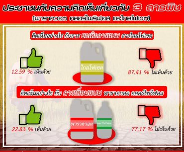 สวนสุนันทาเผย ผลสำรวจประชาชน”ไม่เห็นด้วย” ยกเลิกแบน – เลื่อนแบน 3 สารพิษเจ้าปัญหา tui sakrapee December 26, 2019 มหาวิทยาลัยราชภัฏสวนสุนันทา ได้ทำการสำรวจความคิดเห็นของประชาชนเกี่ยวกับ 3 สารพิษ พาราควอต คลอร์ไพริฟอส และไกลโฟเซต โดยทำการสำรวจจากประชาชนกลุ่มตัวอย่างที่มีอายุ 18 ปีขึ้นไป ในทุกสาขาอาชีพทุกภูมิภาคของประเทศ จำนวน 1,200 คน แยกเป็นเพศชาย ร้อยละ 63.17 และหญิงร้อยละ 36 .83 ผลการสำรวจพบว่า ส่วนใหญ่ ไม่เห็นด้วยกับการยกเลิกการแบนสารไกลโฟเซต คิดเป็นร้อยละ 87.41 ในขณะที่ร้อยละ 12.59 เห็นด้วยกับการยกเลิกการแบนสารดังกล่าว นอกจากนี้ ความคิดเห็นเกี่ยวกับการเลื่อนแบนสารพาราควอตและคลอร์ไพรีฟอส พบว่าร้อยละ 77.17 ไม่เห็นด้วยกับการเลื่อนแบน และเห็นด้วยร้อยละ 22.83 สำหรับเหตุผลที่ทำให้ขยายเวลา และยกเลิกการแบนโดยมีความกังวลเรื่องอุตสาหกรรมอาหารเลี้ยงสัตว์เพียงพอหรือไม่นั้น ผลสำรวจพบว่า ร้อยละ 82.42 ค่อนข้างไม่เพียงพอ ร้อยละ 12.75 ไม่เพียงพอ ร้อยละ 3.08 ค่อนข้างเพียงพอ และร้อยละ 1.75 เพียงพออย่างยิ่ง… Continue Reading