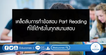 เคล็ดลับการทำข้อสอบ Part Reading ที่ใช้ได้จริงในทุกสนามสอบ EZ Webmaster February 27, 2020 สำหรับข้อสอบวิชาภาษาอังกฤษนั้นไม่ว่าจะเป็นข้อสอบสำหรับการศึกษาต่ออย่าง GAT, O-NET 9 วิชาสามัญ หรือการสอบเพื่อวัดระดับภาษาอังกฤษยอดฮิตอย่าง TOEIC, IETS ก็ล้วนมีการทดสอบในส่วนของ Part Reading ทั้งสิ้น ทำให้เราจำเป็นต้องเตรียมตัวรับมือกับข้อสอบพาร์ทนี้อยู่เสมอ วันนี้เราจึงมีเคล็ดลับการทำข้อสอบ Part Reading ที่ใช้ได้จริงกับทุกสนามสอบมาฝากกันค่ะ เคล็ดลับการสรุป ในโจทย์ข้อสอบภาษาอังกฤษนั้น มักจะใช้คำว่า summaries, conclude, assume ถ้าคำสั่งในโจทย์มีคำศัพท์เหล่านี้ หมายถึงให้เราหาข้อที่พูดถึงการสรุปเรื่องที่อ่านมาในข้างต้น ซึ่งหากเราต้องการทั้งหมดในบทความนั้นๆ ก็อาจจะอ่านไม่ทัน หรือทำไม่ทันได้ เคล็ดลับง่ายๆ ก็คือให้ดูย่อหน้าแรก หรือไม่ก็ย่อหน้าสุดท้ายของเรื่อง เพราะสรุปมักจะอยู่ส่วนนั้น เคล็ดลับการดูความสัมพันธ์ ในโจทย์มักจะใช้คำว่า infer หรือ refer… Continue Reading