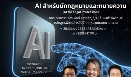 นักศึกษา ยกระดับอาชีพทนายความ! ใช้ AI เพิ่มประสิทธิภาพงานกฎหมายและว่าความอย่างมืออาชีพ กับคอร์ส “AI สำหรับนักกฎหมาย และทนายความ” tui sakrapee April 18, 2025 พลิกโฉมวงการกฎหมาย! ใช้ AI เพิ่มประสิทธิภาพงานกฎหมายและว่าความอย่างมืออาชีพ กับคอร์ส “AI สำหรับนักกฎหมาย และทนายความ” . มหาวิทยาลัยอัสสัมชัญ ร่วมกับ Innotech Center ขอเชิญอบรม “AI สำหรับนักกฎหมาย…