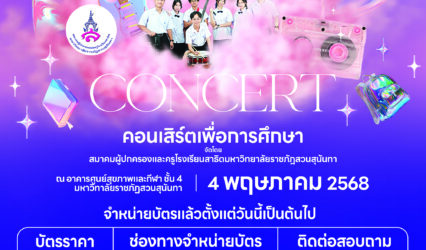กิจกรรม ชวนร่วมคอนเสิร์ตเพื่อการศึกษา ชม “tattoo colour” ช่วยส่งเสริมโอกาสทางการศึกษาของนักเรียน tui sakrapee April 8, 2025 คอนเสิร์ตเพื่อการศึกษา tattoo colour สามารถซื้อบัตรเข้าร่วมชมคอนเสิร์ตกันได้ทั้งนักเรียน นักศึกษา บุคลากร และบุคลภายนอก สมาคมผู้ปกครองและครูโรงเรียนสาธิตมหาวิทยาลัยราชภัฏสวนสุนันทา ขอเชิญชวนทุกท่านร่วมงาน “#คอนเสิร์ตเพื่อการศึกษา” ที่จะมอบความสุข สนุกสนาน และช่วยส่งเสริมโอกาสทางการศึกษาของนักเรียน 📅 วันอาทิตย์ที่ 4…