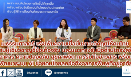 กิจกรรม ม.ธรรมศาสตร์ เร่งเพิ่มความเชื่อมั่นภาวะวิกฤตให้คนไทย ระดมผู้เชี่ยวชาญร่วมชี้ข้อเท็จจริง และแนวทางรับมือด้านโครงสร้างอาคาร ความปลอดภัย สุขภาพจิต การรับมือข่าวสาร พร้อมพัฒนาระบบ AI ช่วยคนไทยลดข้อกังวลการฟื้นฟูที่อยู่อาศัย EZ Webmaster April 8, 2025 มหาวิทยาลัยธรรมศาสตร์ (มธ.) จัดงานเสวนาวิชาการครั้งพิเศษในหัวข้อ “คู่มือรับมือแผ่นดินไหว : ฉบับประชาชน” เปิดพื้นที่แลกเปลี่ยนองค์ความรู้และเสนอแนวทางการเตรียมความพร้อมให้ประชาชนรับมือกับแผ่นดินไหวหรือภัยพิบัติอื่น ๆ ที่อาจเกิดขึ้น พร้อมสร้างความตระหนักรู้ในสังคมไทย และยกระดับความสามารถของประชาชนในการดูแลตนเอง ครอบครัว และชุมชนในยามวิกฤต ผ่านการถ่ายทอดความรู้จากผู้เชี่ยวชาญด้านวิศวกรรม วิศวกรรมโยธา ซึ่งมีประสบการณ์ลงพื้นที่จริง แชร์วิธีการตรวจสอบรอยร้าวและความเสียหายเบื้องต้นของอาคารที่อยู่อาศัย…