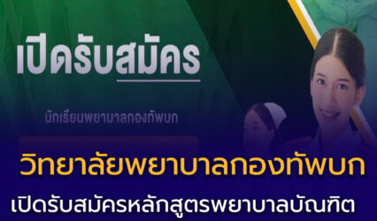 นักเรียน วิทยาลัยพยาบาลกองทัพบก เปิดรับสมัครหลักสูตรพยาบาลศาสตรบัณฑิต ประจำปีการศึกษา 2568 EZ Webmaster April 7, 2025 วิทยาลัยพยาบาลกองทัพบก เปิดรับสมัครแล้ว วันนี้ – 21 เมษายน 2568 กำหนดการรับสมัคร จำนวนการรับ รับ จำนวน 80 คน รับทั้งเพศชายและเพศหญิง โดยจำแนกเป็น 3…