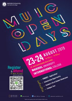 มหิดลอินเตอร์จัดงานเปิดบ้าน 2562 tui sakrapee July 26, 2019 วิทยาลัยนานาชาติ มหาวิทยาลัยมหิดลจะจัดกิจกรรม MUIC Open Days 2019 ภายใต้แนวคิด The Matter of Being Different ในวันศุกร์ที่ 23 และวันเสาร์ที่ 24 ส.ค.2562 เวลา 8:30-16.00 น. ณ อาคารอทิตยาทร วิทยาลัยนานาชาติ ม.มหิดล ศาลายา โดยมีพิธีเปิดในวันศุกร์ที่ 23 สิงหาคมนี้ เวลา 9.00 น. พร้อมเสวนา The Matter of Being Different โดยแขกรับเชิญพิเศษ คุณดารณีนุช ปสุตนาวิน นักแสดงและพิธีกรชื่อดัง (ผู้ปกครอง) คุณพบเอก พรพงเมตตา ผู้ประกาศข่าว และดีเจชั้นนำแห่ง MONO29 (ศิษย์เก่า) และปีเตอร์ เดนแมน นักศึกษาวิทยาลัยฯและดาราดาวรุ่งช่อง 3 (นักศึกษาปัจจุบัน) ภายในงานร่วมสัมผัสความแตกต่างที่น่าค้นหาทั้ง 3 โซนได้แก่ 1. เลือกให้ต่าง 2. เรียนให้ต่าง และ3. ความสำเร็จที่แตกต่าง… Continue Reading