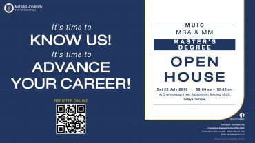 มหิดลอินเตอร์เปิดบ้านป.โทนานาชาติ MASTER’S DEGREE OPEN HOUSE tui sakrapee July 18, 2019 วิทยาลัยนานาชาติ มหาวิทยาลัยมหิดล – MUIC ขอเชิญผู้สนใจศึกษาต่อในระดับปริญญาโทหลักสูตรบริหารธุรกิจมหาบัณฑิต (MBA) และหลักสูตรการจัดการมหาบัณฑิต (MA) เข้าร่วมงานเปิดบ้านป.โทนานาชาติ MBA-MM MASTER’S DEGREE OPEN HOUSE 2019 ในวันเสาร์ที่ 20 กรกฎาคม 2562 เวลา 9.00 – 12.00 น. ณ ห้องจรินทร์ยารัศมิ์ ชั้น 3 อาคารอทิตยาทร มหาวิทยาลัยมหิดล วิทยาเขตศาลายา ร่วมรับฟังข้อมูลการเรียนการสอน พร้อมชมสถานที่เรียนและสิ่งอำนวยความสะดวกต่างๆอย่างใกล้ชิดและเป็นกันเองโดยอาจารย์ผู้สอน ผู้สนใจสามารถสอบถามรายละเอียดและสำรองที่นั่งทางEmail: icgrad@mahidol.ac.th โทร: 02-700-500 ต่อ 4483, 096 685 1334 หรือ Line ID: @muicmaster Continue Reading