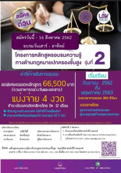 DPU เปิดรับสมัครผู้เข้าร่วมอบรมหลักสูตรความรู้ทางด้านกฎหมายปกครองชั้นสูง รุ่นที่ 2 EZ Webmaster June 28, 2019 DPU เปิดรับสมัครผู้เข้าร่วมอบรมหลักสูตรความรู้ทางด้านกฎหมายปกครองชั้นสูง รุ่นที่ 2 คณะนิติศาสตร์ปรีดี พนมยงค์ มหาวิทยาลัยธุรกิจบัณฑิตย์ ขอเชิญชวนผู้สนใจร่วมโครงการอบรมความรู้ทางด้านกฎหมายปกครองชั้นสูง รุ่นที่ 2 ด้วยหลักสูตรอบรมความรู้ทางด้านกฎหมายปกครองชั้นสูงของคณะนิติศาสตร์ปรีดี พนมยงค์ มหาวิทยาลัยธุรกิจบัณฑิตย์ ได้รับการรับรองโดยคณะกรรมการตุลาการศาลปกครอง (ก.ศป.) ในการสอบตุลาการศาลปกครอง เพื่อให้ผู้เข้าร่วมอบรมได้เรียนรู้และเข้าใจในแนวคิดและหลักการของกฎหมายมหาชนและกฎหมายปกครองทั้งในภาคทฤษฎีและภาคปฏิบัติ ทั้งยังสามารถนำหลักการแนวคิดเกี่ยวกับกฎหมายมหาชนและกฎหมายปกครองไปใช้ในการปฏิบัติงานทางด้านการอำนวยความยุติธรรมทางปกครอง รวมถึงเรียนรู้กระบวนวิธีพิจารณาคดีปกครองสามารถนำไปใช้ในการปฏิบัติงานจริงได้อย่างมีประสิทธิภาพ บรรยายโดยตุลาการศาลปกครองและผู้ครองคุณวุฒิด้านกฎหมายมหาชน เปิดรับสมัครตั้งแต่วันนี้ถึง วันที่ 16 สิงหาคม 2562 โดยจะมีการอบรมในวันเสาร์-อาทิตย์ เริ่มเรียนตั้งแต่เดือนกันยายน 2562 ถึงพฤษภาคม 2563 ผู้สนใจสามารถสำรองที่นั่งหรือติดต่อสอบถามรายละเอียดเพิ่มเติม โทร. 02-954-7300 ต่อ 891, 812, 308 หรือ http://law.dpu.ac.th/download.html Continue Reading