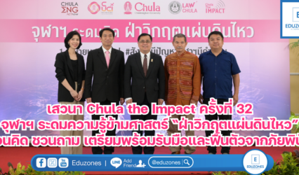 นักศึกษา เสวนา Chula the Impact ครั้งที่ 32 จุฬาฯ ระดมความรู้ข้ามศาสตร์ “ฝ่าวิกฤตแผ่นดินไหว” ชวนคิด ชวนถาม เตรียมพร้อมรับมือและฟื้นตัวจากภัยพิบัติ EZ Webmaster April 1, 2025 เหตุการณ์แผ่นดินไหวที่เกิดขึ้นในกรุงเทพมหานคร เมื่อวันที่ 28 มีนาคม 2568 กลายเป็นบททดสอบครั้งสำคัญที่สร้างความตื่นตระหนกและตั้งคำถามใหญ่ถึงความพร้อมของเมืองหลวงในการรับมือกับภัยธรรมชาติ จุฬาลงกรณ์มหาวิทยาลัยในฐานะสถาบันวิชาการชั้นนำของประเทศ ตระหนักถึงบทบาททางวิชาการและความรู้ข้ามศาสตร์ที่สามารถนำมารับมือกับสถานการณ์ได้อย่างรอบด้าน จึงจัดงานเสวนา Chula the Impact ครั้งที่ 32 ภายใต้หัวข้อ “จุฬาฯ…