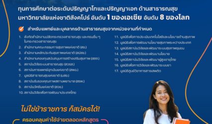 Blogทุนดีดี NUS-MoPH 2026 ทุนเต็มจำนวน เปิดรับแล้ว มอบให้แพทย์และบุคลากรด้านสาธารณสุข tui sakrapee April 1, 2025 เปิดรับสมัครแล้ว! ทุนการศึกษา NUS-MoPH 2026 โอกาสทองสำหรับแพทย์และบุคลากรด้านสาธารณสุข! .โอกาสที่ทุกคนรอคอยกลับมาอีกครั้ง “ทุนการศึกษาระดับปริญญาโทและปริญญาเอกด้านสาธารณสุข ณ มหาวิทยาลัยแห่งชาติสิงคโปร์ (NUS) ประจำปีการศึกษา 2569” เปิดรับสมัครแล้ว. ทุนการศึกษานี้ครอบคลุมค่าใช้จ่ายหลักตลอดหลักสูตร ค่าเล่าเรียนเต็มจำนวน ค่าครองชีพระหว่างการศึกษา. ทุนการศึกษานี้เหมาะกับใครบ้าง ทุนการศึกษานี้เหมาะสำหรับแพทย์หรือบุคลากรด้านสาธารณสุขที่ปฏิบัติงานในหน่วยงานที่กำหนด แม้ไม่ใช่ข้าราชการ ก็สมัครรับทุนได้!พิเศษ ปีนี้เพิ่ม 9 หน่วยงานที่มีสิทธิ์สมัครรับทุน. อย่าลืม สอบภาษาอังกฤษก่อนยื่นสมัครทุนการศึกษา ปริญญาโท: TOEFL (iBT)…