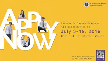 มหิดลอินเตอร์ เปิดรับนักศึกษาใหม่ระดับปริญญาตรี (หลักสูตรนานาชาติ) tui sakrapee July 3, 2019 วิทยาลัยนานาชาติ มหาวิทยาลัยมหิดล (MUIC) เปิดรับสมัครนักศึกษาใหม่ระดับปริญญาตรี หลักสูตรนานาชาติ รอบที่ 2 ประจำปีการศึกษา 2562-2563 จำนวน 6 หลักสูตร 16 สาขาวิชา ระหว่างวันที่ 3 -19 กรกฎาคม 2562 สอบถามรายละเอียดเพิ่มเติมได้ที่ : www.muic.mahidol.ac.th หรือติดต่อหน่วยรับสมัครฯ โทร.0-2700-5000 ต่อ 4344, 4347 อีเมล์ : icdad@mahidol.ac.th หลักสูตรนิเทศศาสตร์บัณฑิต (BACHELOR OF COMMUNICATION ARTS : B.COM.ARTS) – สาขาวิชาสื่อและการสื่อสาร (Media and Communication) หลักสูตรศิลปกรรมศาสตร์บัณฑิต (BACHELOR OF FINE ARTS : B.F.A.) – สาขาวิชาออกแบบนิเทศศิลป์ (Communication Design) หลักสูตรศิลปศาสตรบัณฑิต (BACHELOR OF ARTS : B.A.) – สาขาวิชาความสัมพันธ์ระหว่างประเทศและกิจการทั่วโลก (International Relations and… Continue Reading