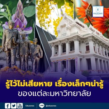 EZ Webmaster February 16, 2026 รู้ไว้ไม่เสียหาย เรื่องเล็กๆ น่ารู้ของแต่ละมหาวิทยาลัย EZ Webmaster February 16, 2026 รู้ไว้ไม่เสียหาย เรื่องเล็กๆ น่ารู้ของแต่ละมหาวิทยาลัย มหาวิทยาลัยแต่ละแห่งไม่ได้มีแค่ชื่อเสียงหรือคณะเด่นเท่านั้น แต่ยังมีเรื่องเล็ก ๆ น้อย ๆ ที่หลายคนอาจมองข้าม ทั้งวัฒนธรรมการเรียน การใช้ชีวิตในรั้วมหาวิทยาลัย สิ่งอำนวยความสะดวก ไปจนถึงบรรยากาศรอบ ๆ ที่ส่งผลต่อชีวิตนักศึกษาโดยตรง เรื่องเหล่านี้แม้จะดูเล็กน้อย แต่รู้ไว้ก่อนตัดสินใจเลือกเรียน ก็ช่วยให้เตรียมตัวและปรับตัวได้ง่ายขึ้นไม่น้อย จุฬาลงกรณ์มหาวิทยาลัย ดอกไม้และต้นไม้ประจำจุฬาลงกรณ์มหาวิทยาลัย คือ : “ต้นจามจุรี” (Rain Tree) หรือที่เรียกกันว่าต้นก้ามปู ความเชื่อ : มีความเชื่อว่าต้นจามจุรีเป็นไม้ให้ร่มเงาและเป็นมงคล สีประจำมหาวิทยาลัย :… Continue Reading