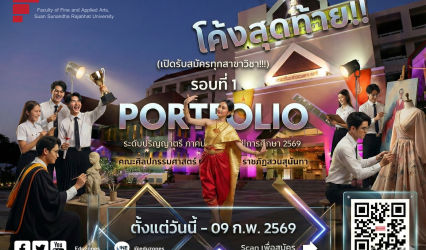 Blogนักเรียน สายอาร์ตต้องมุง! “สวนสุนันทา” ประกาศโค้งสุดท้ายรับสมัครรอบพอร์ต เหลือ 6 วันเท่านั้น tui sakrapee February 4, 2026 โอกาสสุดท้ายรอบพอร์ต! เปิดรับ 7 สาขาท็อปฮิต ปั้นนักสร้างสรรค์มืออาชีพ รีบเลย! หมดเขต 9 ก.พ. นี้ สมัครด่วนผ่านระบบออนไลน์ เข้าสู่ช่วงโค้งสุดท้ายอย่างเป็นทางการ สำหรับการเปิดรับสมัครนักศึกษาใหม่ระดับปริญญาตรี (ภาคปกติ) ประจำปีการศึกษา 2569…