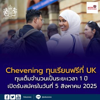 EZ Webmaster July 13, 2025 Chevening ทุนเรียนฟรีที่สหราชอาณาจักร เตรียมเปิดรับ 5 ส.ค.นี้ EZ Webmaster July 13, 2025 Chevening โครงการทุนการศึกษาของรัฐบาลสหราชอาณาจักรที่มอบโอกาสให้กับคนรุ่นใหม่จากทั่วโลกที่มีความสามารถและมีผลการเรียนโดดเด่นได้มาศึกษาต่อปริญญาโทที่สหราชอาณาจักร โดยทุนนี้เป็นการสนับสนุนทางการเงินเต็มจำนวนเป็นระยะเวลา 1 ปี เพื่อช่วยให้นักศึกษามุ่งศึกษาจนประสบผลสำเร็จตามเป้าหมาย รวมถึงได้รับประสบการณ์ใช้ชีวิตที่ดีในสหราชอาณาจักร เตรียมเปิดรับสมัครในวันที่ 5 สิงหาคม 2025 นี้ สิ่งที่จะได้รับจากทุน Chevening -ครอบคลุมเงินค่าเล่าเรียนทั้งหมด -ค่าใช้จ่ายในการดำรงชีวิตในสหราชอาณาจักร -ค่าตั๋วเครื่องบินไป-กลับสหราชอาณาจักร -เข้าร่วมงานกิจกรรม Networking ที่จัดขึ้นโดยเฉพาะสำหรับผู้ที่ได้รับทุนนี้ -การฝึกงาน การเข้าร่วมสัมมนาต่าง ๆ และท่องเที่ยวทั่วสหราชอาณาจักร -โอกาสการในการทำงานเป็นอาสาสมัคร คุณสมบัติเบื้องต้น -เป็นพลเมืองของประเทศที่ได้รับสิทธิ์ทุนชีฟนิ่ง (ซึ่งรวมถึงประเทศไทยด้วย) -เรียนจบระดับปริญญาตรี -มีผลการเรียนดีเยี่ยม -มีประสบการณ์การทำงานอย่างน้อย 2 ปี… Continue Reading