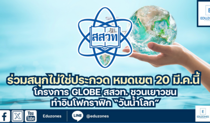 นักเรียน ร่วมสนุกไม่ใช่ประกวด หมดเขต 20 มี.ค.นี้ โครงการ GLOBE สสวท. ชวนเยาวชนทำอินโฟกราฟิก “วันน้ำโลก” EZ Webmaster March 12, 2025 สถาบันส่งเสริมการสอนวิทยาศาสตร์และเทคโนโลยี (สสวท.) โดยโครงการโลกศึกษาเพื่อพัฒนาสิ่งแวดล้อม (GLOBE) เชิญน้อง ๆ เยาวชนร่วมกิจกรรมวันน้ำโลก 2025 หัวข้อ “Glacier Watch with GLOBE” โดยจัดทำอินโฟกราฟิก หรือข้อความพร้อมภาพประกอบในรูปแบบโปสการ์ด ขนาด 10.16 x 15.24 เซนติเมตร หรือขนาด 4…