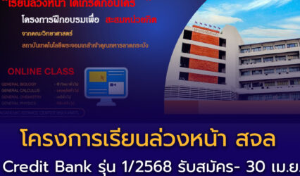 นักเรียน โครงการเรียนล่วงหน้า สจล. Credit Bank รุ่น 1/2568 EZ Webmaster March 6, 2025 Credit Bank รุ่น 1/2568 (เปิดรับสมัคร 1 มีนาคม 2568 – 30 เมษายน 2568) วันรับสมัคร : ตั้งแต่วันนี้ –…