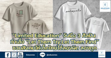 EZ Webmaster July 3, 2025 “Limited Education” จับมือ 3 ศิลปิน ทำเสื้อ “Let Them Try.Let Them Find” ชวนสังคมให้เด็กไทยได้ลองผิด ลองถูก EZ Webmaster July 3, 2025 กลับมาอีกครั้งสำหรับแคมเปญระดมทุน “Limited Education” สู่ปีที่ 9 เริ่มโครงการแรกของปีด้วยแนวคิด “Let Them Try. Let Them Find” กับเสื้อยืดการกุศล 3 แบบโดย 3 ศิลปิน “Studio Cantalove- Art of Hongtae -SOMMARKZ” อาสาสื่อสารชวนสังคมตื่นตระหนักในการให้พื้นที่เด็กไทยได้ลองผิดลองถูกเพื่อค้นพบตัวเอง รายได้ทั้งหมดมอบให้โครงการร้อยพลังการศึกษา มูลนิธิยุวพัฒน์ ดังที่ทราบกันว่า ปัญหาความเหลื่อมล้ำเป็นหนึ่งปัญหาใหญ่ของประเทศไทย ส่งผลต่อปัญหาด้านการศึกษาที่ทำให้แต่ละปีมีเด็กไทยหลุดออกจากระบบกว่า 100,000 คน… Continue Reading