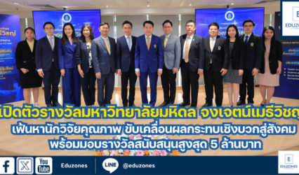 กิจกรรม มหาวิทยาลัยมหิดล ชูวงการวิจัยไทย! เปิดตัวรางวัลมหาวิทยาลัยมหิดล จงเจตน์เมธีวิชญ์ เฟ้นหานักวิจัยคุณภาพ ร่วมขับเคลื่อนผลกระทบเชิงบวกสู่สังคม พร้อมมอบรางวัลสนับสนุนสูงสุด 5 ล้านบาท EZ Webmaster March 3, 2025 มหาวิทยาลัยมหิดล ตอกย้ำบทบาทผู้นำด้านการวิจัยและพัฒนานวัตกรรมเปิดตัว “รางวัลมหาวิทยาลัยมหิดล จงเจตน์เมธีวิชญ์” รางวัลทรงเกียรติที่มุ่งยกย่องและสนับสนุนนักวิจัยไทยผู้สร้างสรรค์ผลงานวิจัยที่นำไปใช้ประโยชน์ได้จริง สร้างผลกระทบเชิงบวกสู่สังคม และสร้างการเปลี่ยนแปลงอย่างเป็นรูปธรรม ภายใต้แนวคิด “Real World Impact for Sustainability” มอบรางวัลสนับสนุนสูงสุด 5 ล้านบาท เน้นงานวิจัยใน 3 สาขาหลัก ได้แก่ วิทยาศาสตร์สุขภาพ, วิทยาศาสตร์และเทคโนโลยี, และสังคมศาสตร์ มนุษยศาสตร์ และศิลปะ พร้อมเดินหน้าสนับสนุนนักวิจัยไทยสู่เวทีโลก…