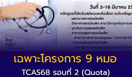 นักเรียน เปิดรับสมัคร TCAS68 รอบ 2 Quota (รอบเพิ่มเติม) เฉพาะโครงการ 9 หมอ สถาบันพระบรมราชชนก EZ Webmaster March 3, 2025 เปิดรับสมัคร รอบ 2 Quota (รอบเพิ่มเติม) เฉพาะโครงการ 9 หมอ สถาบันพระบรมราชชนก ในวันที่ 3-16 มีนาคม 2568 ระบบรับสมัคร คลิก เว็บไซต์…