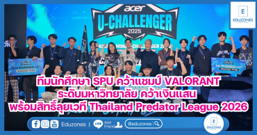 ทีมนักศึกษา SPU คว้าแชมป์ VALORANT ระดับมหาวิทยาลัย คว้าเงินแสน พร้อมสิทธิ์ลุยเวที Thailand Predator League 2026 EZ Webmaster July 1, 2025 ทีมนักศึกษาคณะดิจิทัลมีเดีย สาขาการออกแบบอินเทอร์แอคทีฟและเกม มหาวิทยาลัยศรีปทุม ในนามทีม ABBACK ซึ่งประกอบด้วย นายพงศพัฒน์ ใจกระจ่าง นายกฤษดา ศิริเวช และนายอาทิตย์ มฤคทัต สามารถคว้ารางวัลชนะเลิศจากการแข่งขันเกม VALORANT รายการ Acer Gaming U-Challenger 2025 | University Invitational Season 1 ซึ่งเป็นการแข่งขันอีสปอร์ตระดับอุดมศึกษาที่จัดขึ้นอย่างเข้มข้น พร้อมรับเงินรางวัลมูลค่า 100,000 บาท และสิทธิ์ในการเป็นตัวแทนเข้าร่วมการแข่งขัน Thailand Predator League 2026 พิธีมอบรางวัลจัดขึ้นเมื่อวันที่ 27 มิถุนายน 2568 ณ อาคาร 11 ชั้น 1… Continue Reading