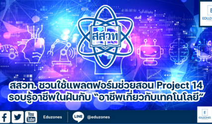นักเรียน สสวท. ชวนใช้แพลตฟอร์มช่วยสอน Project 14 รอบรู้อาชีพในฝันกับ “อาชีพเกี่ยวกับเทคโนโลยี” EZ Webmaster March 3, 2025 สถาบันส่งเสริมการสอนวิทยาศาสตร์และเทคโนโลยี (สสวท.) พาชั้นเรียนทันยุคสนุกกับบทเรียนออนไลน์ เรื่อง อาชีพในยุคดิจิทัล หนังสือเรียนวิทยาศาสตร์และเทคโนโลยี สาระเทคโนโลยี (วิทยาการคำนวณ) มัธยมศึกษาปีที่ 6 หัวข้อ “อาชีพเกี่ยวกับเทคโนโลยี” อธิบายลักษณะอาชีพที่เกี่ยวข้องกับเทคโนโลยี วิเคราะห์ความเปลี่ยนแปลงของอาชีพที่ต้องปรับตัวในอนาคต กระตุ้นให้ตระหนักถึงความสำคัญของเทคโนโลยีกับอาชีพ รวมทั้งตัวอย่างอาชีพในฝันที่เกี่ยวกับเทคโนโลยี แนวทางและทักษะความรู้ที่จำเป็น เช่น นักพัฒนาเกม…