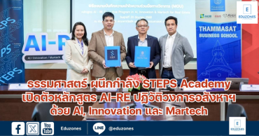 ธรรมศาสตร์ ผนึกกำลัง STEPS Academy เปิดตัวหลักสูตร AI-RE ปฏิวัติวงการอสังหาฯ ด้วย AI, Innovation และ Martech EZ Webmaster July 1, 2025 คณะพาณิชยศาสตร์และการบัญชี มหาวิทยาลัยธรรมศาสตร์ (Thammasat Business School) ร่วมกับ STEPS Academy ประกาศความร่วมมือครั้งสำคัญในการลงนามบันทึกข้อตกลงความเข้าใจ (MOU) จัดตั้งหลักสูตร “AI – RE Executive Program in AI, Innovation & Martech for Real Estate by Thammasat Business School x STEPS ACADEMY” หลักสูตรเร่งรัดที่มุ่งพลิกโฉมธุรกิจอสังหาริมทรัพย์ไทยสู่ “Business Transformation Model” ด้วยนวัตกรรมและเทคโนโลยี โดยเฉพาะอย่างยิ่งเทคโนโลยีปัญญาประดิษฐ์ (AI) และเทคโนโลยีการตลาด (Marketing Technology หรือ… Continue Reading