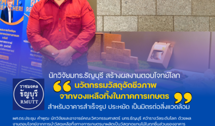 Blogครู-อาจารย์ นวัตกรรมวัสดุอัดชีวภาพจากของเหลือทิ้งในภาคการเกษตร สำหรับอาคารสำเร็จรูป ประหยัด เป็นมิตรต่อสิ่งแวดล้อม ผลงานนักวิจัยมทร.ธัญบุรี tui sakrapee February 25, 2025 นวัตกรรมวัสดุอัดชีวภาพจากของเหลือทิ้งในภาคการเกษตร สำหรับอาคารสำเร็จรูป ส่งตรงจากหน่วยวิจัยวัสดุที่เป็นมิตรต่อสิ่งแวดล้อม มหาวิทยาลัยเทคโนโลยีราชมงคลธัญบุรี “นวัตกรรมวัสดุอัดชีวภาพจากของเหลือทิ้งในภาคการเกษตร สำหรับอาคารสำเร็จรูป” ผลงานของ ผู้ช่วยศาสตราจารย์ ดร.ประชุม คำพุฒ นักวิจัยและอาจารย์คณะวิศวกรรมศาสตร์ คว้ารางวัล WIIPA Special Award จาก…