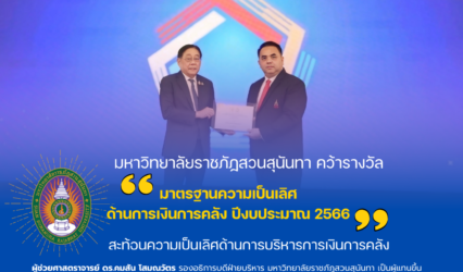 Blogครู-อาจารย์ มหาวิทยาลัยราชภัฏสวนสุนันทา คว้ารางวัลมาตรฐานความเป็นเลิศด้านการเงินการคลัง ประจำปีงบประมาณ 2566 tui sakrapee February 25, 2025 มหาวิทยาลัยราชภัฏสวนสุนันทา คว้ารางวัลมาตรฐานความเป็นเลิศด้านการเงินการคลัง ประจำปีงบประมาณ 2566 📅 วันที่ 24 กุมภาพันธ์ 2568 – ณ ตึกสันติไมตรี ทำเนียบรัฐบาล กรุงเทพมหานคร นายพิชัย ชุณหวชิร…