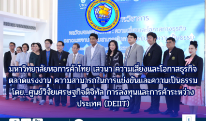 Blogมหาวิทยาลัย มหาวิทยาลัยหอการค้าไทย เสวนา ความเสี่ยงและโอกาสธุรกิจ ตลาดแรงงาน ความสามารถในการแข่งขันและความเป็นธรรม โดย…ศูนย์วิจัยเศรษฐกิจดิจิทัล การลงทุนและการค้าระหว่างประเทศ (DEIIT) EZ Webmaster February 14, 2025 รศ.ดร.อนุสรณ์ ธรรมใจ คณบดีคณะเศรษฐศาสตร์และผู้อำนวยการศูนย์วิจัยเศรษฐกิจดิจิทัล ของกองทุน การค้าระหว่างประเทศ (DEIIT) ได้กล่าวในงานเสวนาทางวิชาการว่า “จากข้อมูลผลสำรวจความคิดเห็นของศูนย์วิจัยเศรษฐกิจดิจิทัล กองทุนและการค้าระหว่างประเทศ และคณะเศณษฐศาสตร์ มหาวิทยาลัยหอการค้าไทย พบว่า ธุรกิจขนาดกลางแบะขาดเล็กส่วนใหญ่คาดว่าแนวโน้มเศรษฐกิจในไทยปี 2568 จะแย่ลงโดยเฉพาะผู้ประกอบการขนาดย่อย มีการเตรียมตัวสำหรับการปรับตัวต่อเศรษฐกิจดิจิทัล…