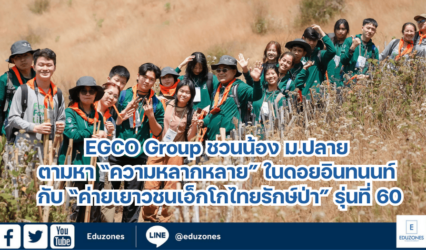 นักเรียน EGCO Group ชวนน้อง ม.ปลาย ตามหา “ความหลากหลาย” ในดอยอินทนนท์ กับ “ค่ายเยาวชนเอ็กโกไทยรักษ์ป่า” รุ่นที่ 60 EZ Webmaster February 13, 2025 บริษัท ผลิตไฟฟ้า จำกัด (มหาชน) หรือ EGCO Group ร่วมกับมูลนิธิไทยรักษ์ป่า องค์กรสาธารณกุศลซึ่งก่อตั้งและสนับสนุนการดำเนินงานโดย EGCO Group และอุทยานแห่งชาติดอยอินทนนท์ ชวนเยาวชนระดับมัธยมศึกษาตอนปลายหรือเทียบเท่า จากทุกภูมิภาคทั่วประเทศ มาร่วมเดินทางไปสำรวจและสัมผัสความเชื่อมโยงของสิ่งมีชีวิตและความหลากหลายทางชีวภาพในผืนป่าต้นน้ำ กับ “ค่ายเยาวชนเอ็กโกไทยรักษ์ป่า รุ่นที่ 60” ภายใต้แนวคิด “ตามหา “ความหลากหลาย”…