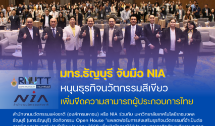 Blogครู-อาจารย์ มทร.ธัญบุรี จับมือ NIA หนุนธุรกิจนวัตกรรมสีเขียว เพิ่มขีดความสามารถผู้ประกอบการไทย tui sakrapee February 10, 2025 สำนักงานนวัตกรรมแห่งชาติ (องค์การมหาชน) หรือ NIA ร่วมกับ มหาวิทยาลัยเทคโนโลยีราชมงคลธัญบุรี (มทร.ธัญบุรี) จัดกิจกรรม Open House “แพลตฟอร์มการส่งเสริมธุรกิจนวัตกรรมที่จำเป็นต่อการพัฒนาประเทศ” ประจำปีงบประมาณ 2568 เพื่อเปิดโอกาสให้ผู้ประกอบการธุรกิจด้านพลังงานสะอาด เศรษฐกิจหมุนเวียน และเศรษฐกิจคาร์บอนต่ำ…