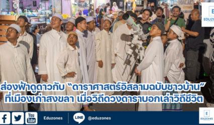 นักเรียน ส่องฟ้าดูดาวกับ “ดาราศาสตร์อิสลามฉบับชาวบ้าน” ที่เมืองเก่าสงขลา เมื่อวิถีดวงดาราบอกเล่าวิถีชีวิต EZ Webmaster February 4, 2025 คำกล่าวที่คุ้นหูอย่าง “ให้ดวงดาวนำทาง” อาจฟังดูเป็นเพียงสำนวน แต่แท้จริงแล้ววิถีชีวิตของเราต่างเกี่ยวโยงคู่ท้องฟ้า โดยเฉพาะมิติด้านศาสนาที่นำไปสู่องค์ความรู้ที่เรียกว่า “ดาราศาสตร์พหุวัฒนธรรม” แววตาของผู้คนที่แหงนมองท้องฟ้าผ่านกล้องโทรทรรศน์ที่ตั้งเรียงรายกลางย่านเมืองเก่าสงขลา สะท้อนความใคร่รู้ปนตื่นเต้นที่ได้เห็นดวงดาวด้วยตาตนเองท่ามกลางฉากหลังของตลาดบ้านบนและมัสยิดอุสาสนอิสลาม พร้อมดวงจันทร์บอลลูนขนาดใหญ่ที่ตั้งตระหง่าน ความงดงามที่ปรากฏเบื้องหน้าไม่เพียงสร้างความประทับใจแก่ชุมชนและนักท่องเที่ยวที่สัญจรผ่านมา แต่ยังจุดประกายความเข้าใจใหม่เกี่ยวกับดาราศาสตร์อิสลาม หรือ “อัลฟาลัก” วิชาวิทยาศาสตร์มรดกของสังคมมุสลิมที่ศึกษาเกี่ยวกับตำแหน่งและการเคลื่อนที่ของวัตถุท้องฟ้า ซึ่งหลอมรวมวิถีชีวิต ความเชื่อ…