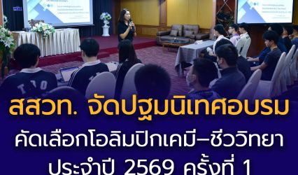 Blogครู-อาจารย์นักเรียน สสวท. จัดปฐมนิเทศอบรมคัดเลือกโอลิมปิกเคมี–ชีววิทยา ประจำปี 2569 ครั้งที่ 1 จุดประกายเยาวชนสู่เวทีโลก EZ Webmaster April 21, 2026 สถาบันส่งเสริมการสอนวิทยาศาสตร์และเทคโนโลยี (สสวท.) จัดปฐมนิเทศการอบรมคัดเลือก ครั้งที่ 1 วิชาเคมีและชีววิทยา ภายใต้โครงการจัดส่งผู้แทนประเทศไทยไปแข่งขันคณิตศาสตร์และวิทยาศาสตร์โอลิมปิกระหว่างประเทศ ประจำปี พ.ศ. 2569 เมื่อวันที่ 20 เมษายน 2569 ณ โรงแรมแกรนด์ทาวเวอร์อินน์…
