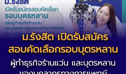 Blogนักศึกษานักเรียนมหาวิทยาลัย คณะทัศนมาตรศาสตร์ ม.รังสิต เปิดรับสมัครสอบคัดเลือก รอบบุตรหลาน หรือผู้ทำธุรกิจร้านแว่น และบุตรหลานของบุคลากรทางการแพทย์ ปีการศึกษา’69 EZ Webmaster April 21, 2026 คณะทัศนมาตรศาสตร์ มหาวิทยาลัยรังสิต เปิดรับสมัครสอบคัดเลือกบุคคลเข้าศึกษาต่อในระดับปริญญาตรี หลักสูตรทัศนมาตรศาสตรบัณฑิต รอบบุตรหลานหรือผู้ทำธุรกิจร้านแว่น และบุตรหลานของบุคลากรทางการแพทย์ ประจำปีการศึกษา 2569 โดยมีคุณสมบัติเฉพาะดังนี้ 1. รับสมัคร ผู้สำเร็จการศึกษาระดับมัธยมปลาย สายวิทย์-คณิต เกรดเฉลี่ย 2.50 ขึ้นไป…