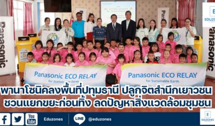 นักเรียน พานาโซนิคลงพื้นที่ปทุมธานี ปลูกจิตสำนึกเยาวชน ชวนแยกขยะก่อนทิ้ง ลดปัญหาสิ่งแวดล้อมชุมชน EZ Webmaster January 29, 2025 พานาโซนิคในประเทศไทยลงพื้นที่จังหวัดปทุมธานี จัดกิจกรรม “พานาโซนิคชวนแยกขยะลดมลภาวะในชุมชน“ ภายใต้โครงการ “พานาโซนิค แคร์ (Panasonic Cares)” ปีที่ 2 มอบ “ชุดถังขยะแยกประเภท” พร้อมหลอดไฟ พานาโซนิค แอลอีดี ประหยัดพลังงาน ให้แก่ โรงเรียนวัดคุณหญิงส้มจีน มิตรภาพที่ 64 และโรงเรียนวันครู 2502 ในจังหวัดปทุมธานี เพื่อปลูกจิตสำนึกด้านสิ่งแวดล้อมให้เยาวชน ได้เรียนรู้การคัดแยกขยะอย่างถูกวิธีก่อนทิ้ง ช่วยกันลดปัญหาปริมาณขยะตกค้าง…