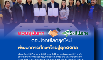 Blogครู-อาจารย์นักศึกษา มหาวิทยาลัยราชภัฏสวนสุนันทา จับมือ SkillLane ตอบโจทย์โลกยุคใหม่ พัฒนาการศึกษาไทยสู่ยุคดิจิทัล tui sakrapee January 27, 2025 เมื่อวันจันทร์ที่ 27 มกราคม 2568 เวลา 13.00 น. ณ ห้องประชุม 3411 สำนักวิชาการศึกษาทั่วไปและนวัตกรรมการเรียนรู้อิเล็กทรอนิกส์ มหาวิทยาลัยราชภัฏสวนสุนันทา ได้ลงนามบันทึกความเข้าใจทางวิชาการ (MOU) กับ บริษัท…