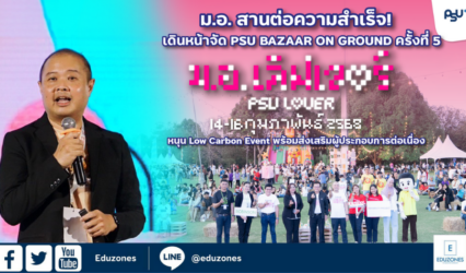 นักศึกษา ม.อ. สานต่อความสำเร็จ! เดินหน้าจัด PSU Bazaar on Ground ครั้งที่ 5 ‘ม.อ. เลิฟเวอร์’ 14-16 ก.พ. นี้ หนุน Low Carbon Event พร้อมส่งเสริมผู้ประกอบการต่อเนื่อง EZ Webmaster January 14, 2025 มหาวิทยาลัยสงขลานครินทร์ เดินหน้าจัดงาน PSU Bazaar on Ground ครั้งที่ 5 ภายใต้คอนเซปต์ “ม.อ. เลิฟเวอร์” เทศกาลอาหาร ดนตรี และศิลปะ ที่อบอวลไปด้วยความรัก ในรูปแบบ Low Carbon Event ระหว่างวันที่…