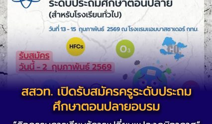 Blogครู-อาจารย์นักเรียน สสวท. เปิดรับสมัครครูระดับประถมศึกษาตอนปลายอบรม “กิจกรรมการเรียนรู้การเปลี่ยนแปลงภูมิอากาศ” เสริมทักษะจัดการเรียนรู้สู่ห้องเรียนจริง EZ Webmaster January 28, 2026 สถาบันส่งเสริมการสอนวิทยาศาสตร์และเทคโนโลยี (สสวท.) เปิดรับสมัครครูระดับประถมศึกษาตอนปลาย เข้ารับการอบรม “กิจกรรมการเรียนรู้การเปลี่ยนแปลงภูมิอากาศ ระดับประถมศึกษาตอนปลาย (สำหรับโรงเรียนทั่วไป)” ระหว่างวันที่ 13–15 กุมภาพันธ์ 2569 ณ โรงแรมแอมบาสซาเดอร์ สุขุมวิท กรุงเทพฯ เพื่อเสริมสร้างความรู้ ความเข้าใจ และแนวทางการจัดการเรียนรู้ด้านการเปลี่ยนแปลงภูมิอากาศที่สามารถนำไปประยุกต์ใช้ได้จริงทั้งในและนอกห้องเรียน เตรียมพร้อมรับมือวิกฤตโลกร้อน…