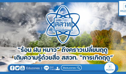 นักเรียน “ร้อน ฝน หนาว” ถึงคราวเปลี่ยนฤดู เติมความรู้ด้วยสื่อ สสวท. “การเกิดฤดู” EZ Webmaster December 24, 2024 สถาบันส่งเสริมการสอนวิทยาศาสตร์และเทคโนโลยี (สสวท.) พาเรียนรู้ว่าฤดูเกิดได้อย่างไร กับสื่ออินเตอร์แอ็กทีฟซิมูเลชัน “การเกิดฤดู” สื่อการเรียนการสอนวิทยาศาสตร์ โลก ดาราศาสตร์ และอวกาศ มัธยมศึกษาปีที่ 3 อธิบายให้เห็นรังสีของแสงจากดวงอาทิตย์ที่ตกลงบนโลก ขณะโลกโครจรรอบดวงอาทิตย์ในลักษณะที่แกนโลกเอียงคงที่ ซึ่งส่งผลต่อ การเปลี่ยนแปลงอุณหภูมิบนผิวโลกและทำให้เกิด “ฤดูของโลก” นั่นเอง ดาวน์โหลดเติมพลังสอนให้ชั้นเรียนที่ คลังความรู้ SciMath สสวท. https://www.scimath.org/desktop-application/item/10591 หรือคลังสื่อการสอน สสวท https://myipst.ipst.ac.th/medias/การเกิดฤดู